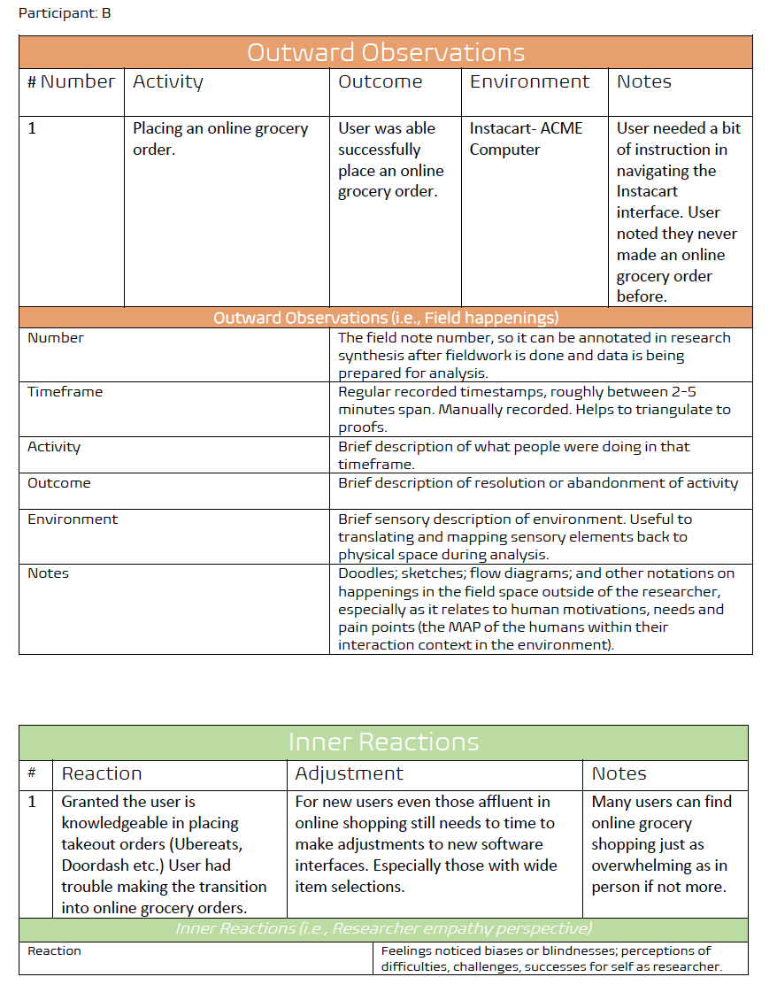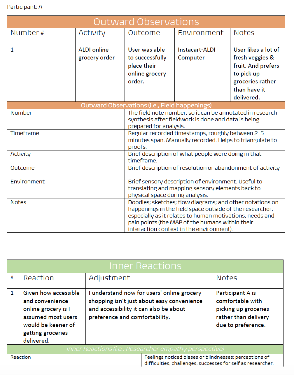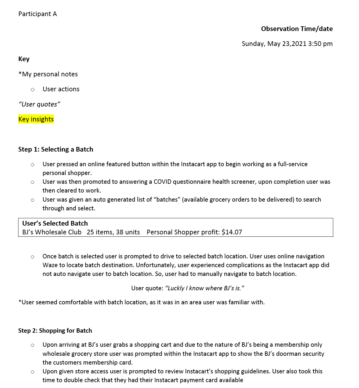 The contextual inquiries were designed to observe participants as they complete a mock grocery order using their preferred online platform service.