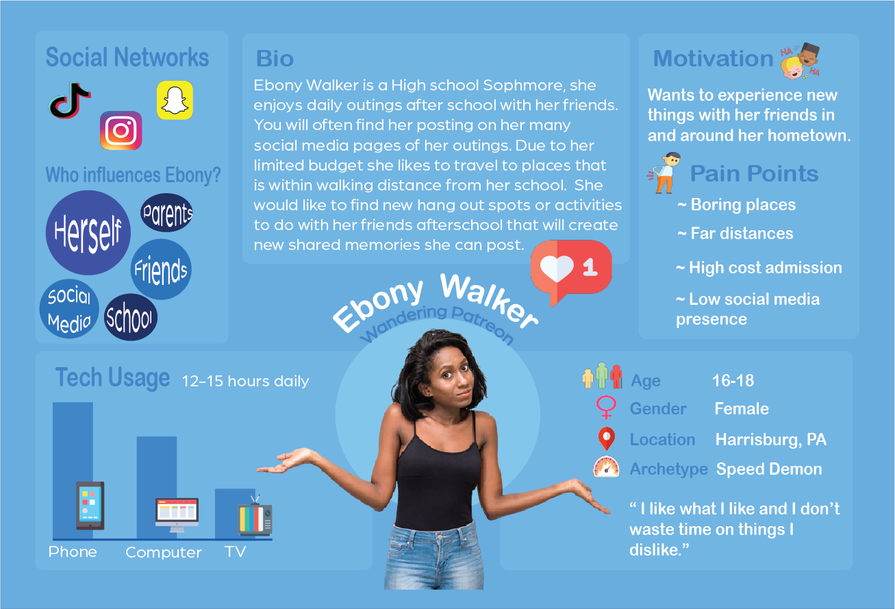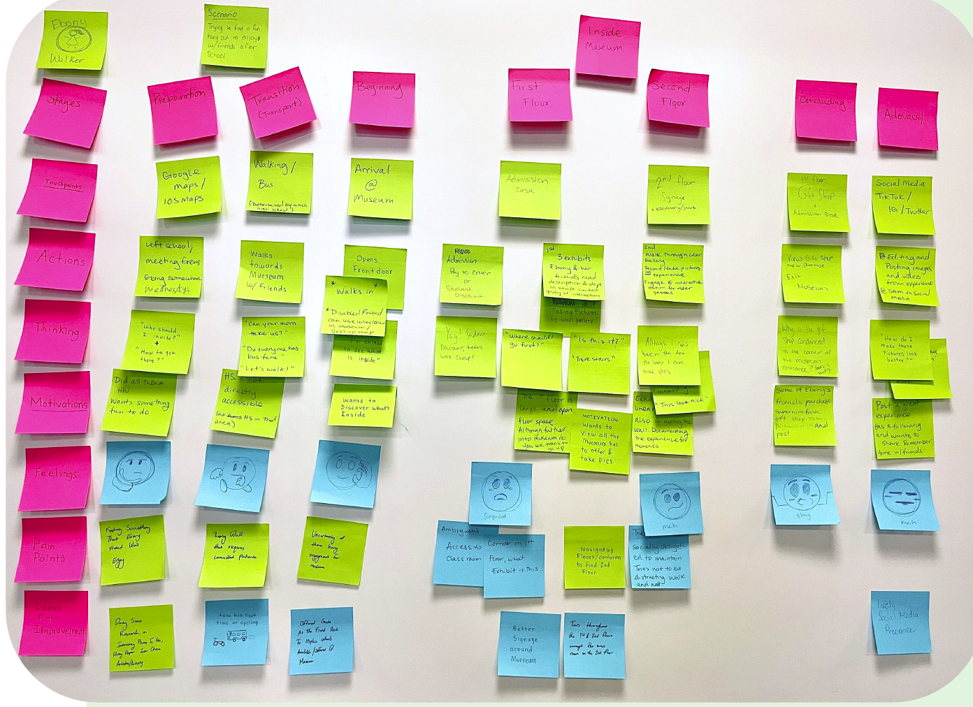 Based upon our museum patron observations we crafted several journey maps and personas. In order to visualize the patron’s current experience.