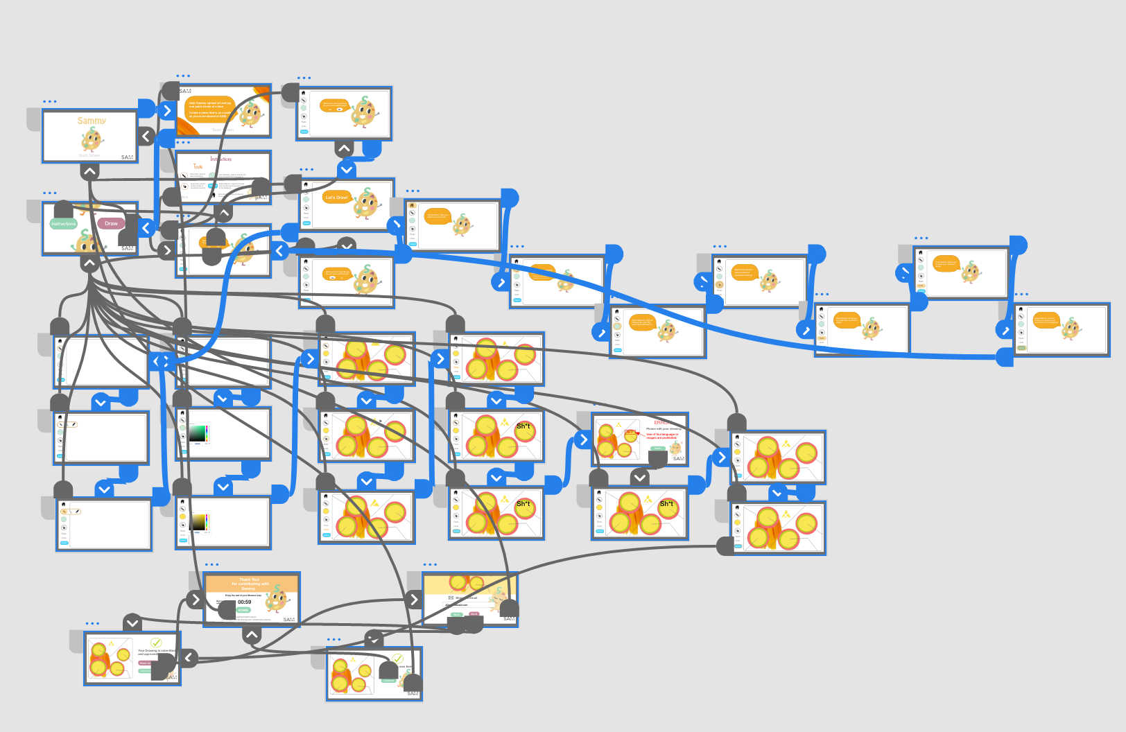 Constructed a interaction model of the Sammy application. To help articulate the general user flow, app functionality and features before designing the prototype.